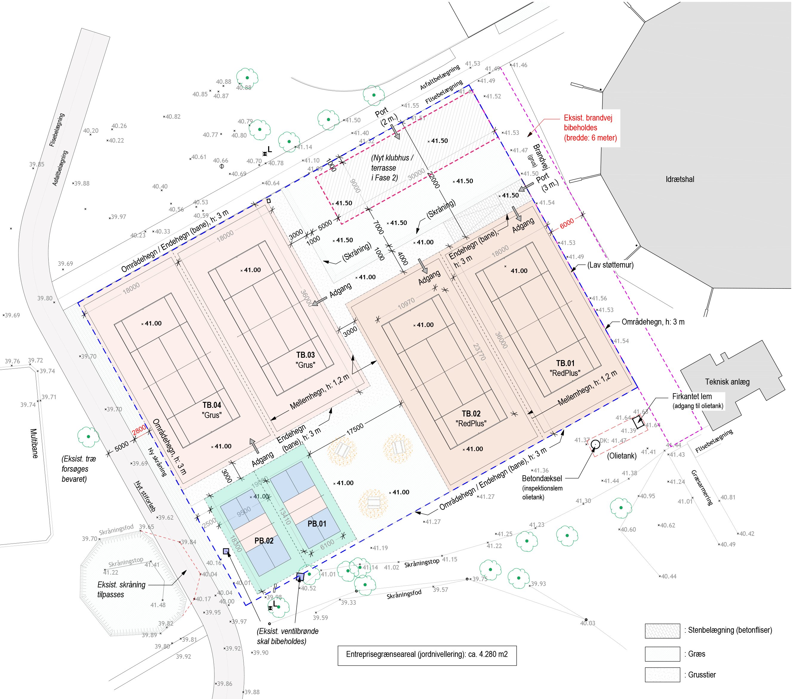 Fase 1: Terrænregulering samt anlægsarbejder ifm. etablering af de nye tennis-/ og pickleball-baner.